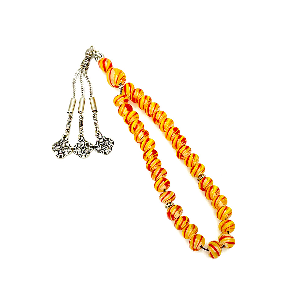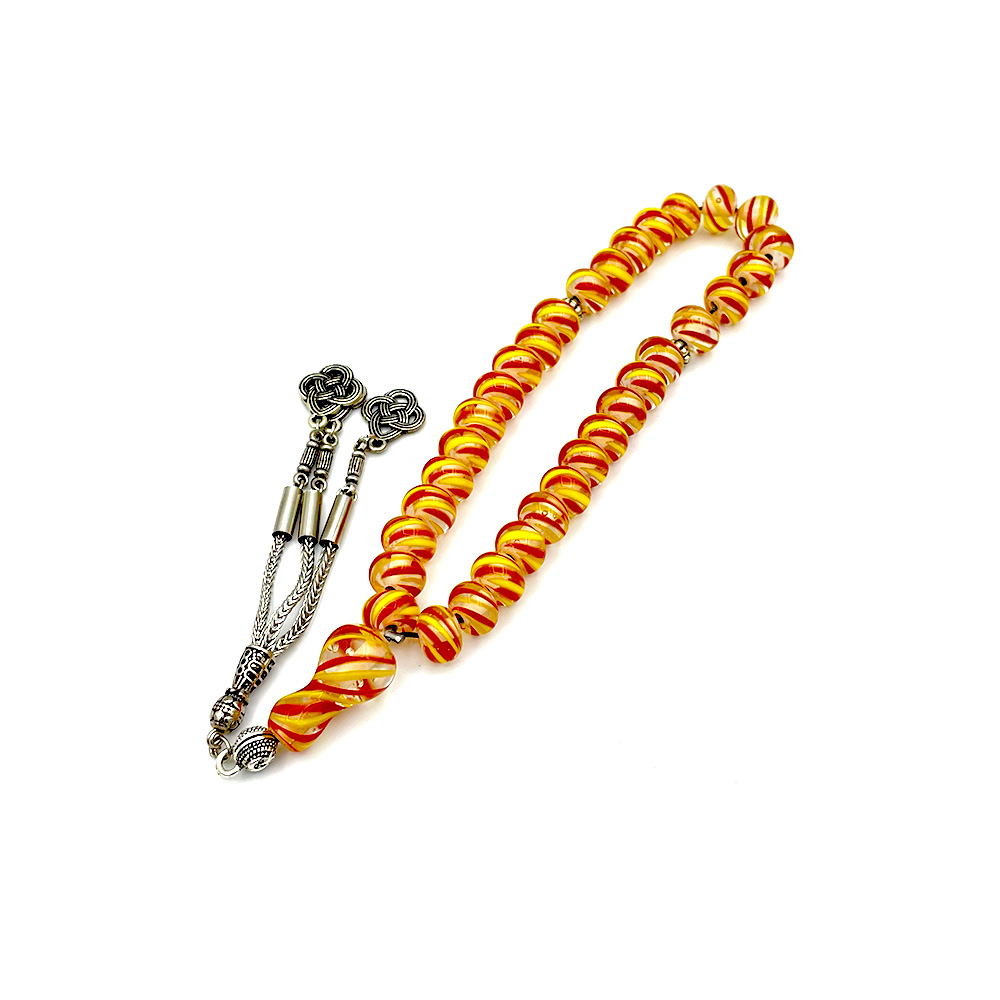 Sarı Kırmızı Boncuklu Çeşmi Bülbül Tesbih | Galatasaray Tesbihi