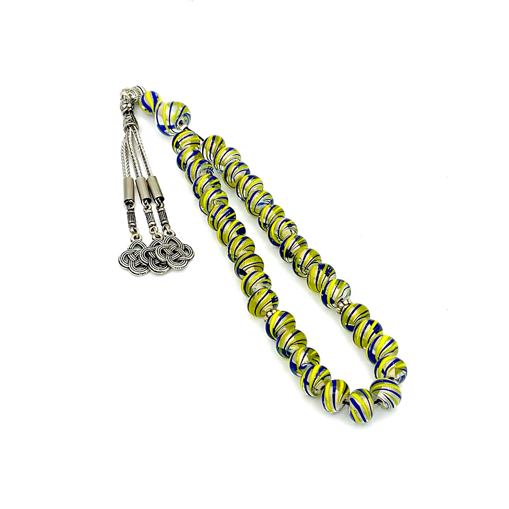 Sarı Lacivert Boncuklu Çeşmi Bülbül Tesbih | Hediyelik Fenerbahçe Tesbih
